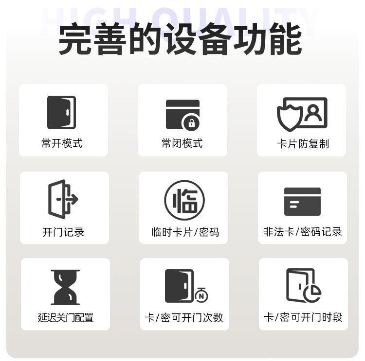 铜川这款智能门锁提供室内门锁和防盗门锁两种选择,其中室内门锁尺寸为 2806521mm,适配 5050 锁体;防盗门锁尺寸为 3657021mm,适配 6068 锁体,可满足不同场景的安装需求。它采用铝合金一体成型搭配钢化玻璃面板打造,兼具坚固耐用的品质与简洁美观的视觉效果。门锁支持蓝牙无线通讯,解锁方式丰富多样,密码、卡片、蓝牙、钥匙四种方式随心选择,满足不同使用习惯与应急需求。其工作温度范围为 - 20~70℃,能适应多数地区的气候条件,采用碱性电池供电,安装更换便捷,是兼具安全性与实用性的门锁选择。